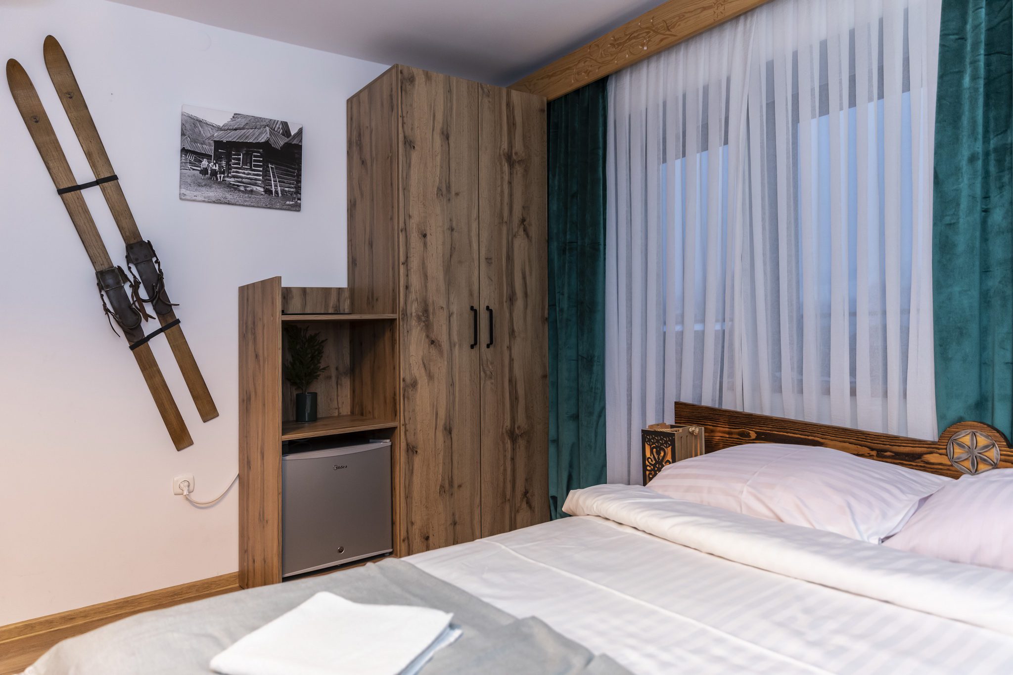 Wyposażony w wygodne łóżko małżenskie dwuosobowe, dodatkowo balkon z widokiem na Tatry , przestronną szafę, biurko.Tv-Led, internet wi-fi, Lodówka hotelowa, czajnik elektryczny.
